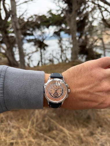 In love with this watch....the dial is mesmerizing how the carbon motif dances in the light, and love the salmon dial. I am addicted and looking for my next PP to fit into the collection. Thinking about a 6119G, 5235R, 5320G cream dial, or 5224G. Also ordered the strap from the 5316....I like the ca