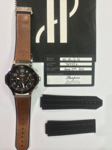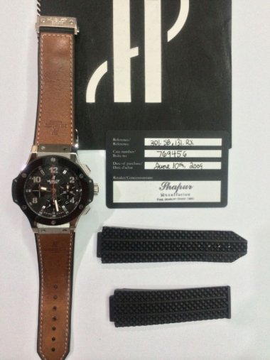 ~ Hublot Big Bang Stainless Steel Case, Ceramic Basel, Kevlar Black Carbon Fiber dial - Rubber. ~ Reference Number: 301.SB.131.RX. ~ Condition: Very Good, few hairline scratches on the basel and buckle Complete with Box Paper dated 2009 with extended warranty till 2015 (Mr. Biver). The ceramic basel
