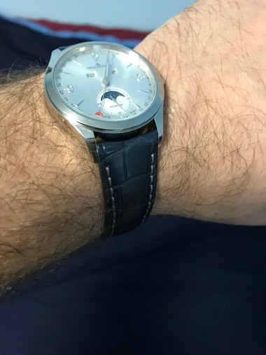 I didn't know they still made the meteorite dial it's not on the JLC website, but yours has the latest rotor. I recently got a new regular 39mm Calendar but my strap says made in Switzerland and is crocodile and yours looks like Alligator and says strap made in France (I see an F in your pic so I as