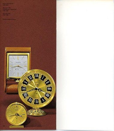Stefan, Just thought you might like to see the original 1965 JLC Catalog page showing your exact clock model. It was called the "Recital 106" and originally sold for DM 160 in 1965: Regards, Greg