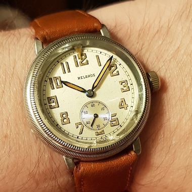 Hello, These watches are made by Helvetia for Helbros, the movement is the Helvetia 82A. I have a white dialled version. Have a look at my site for details about Helvetia pilots watches, the Helbros ones are about half way down the pilots watch page. Thanks. Carl