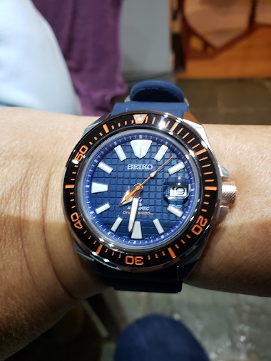 There are so many variations of Seiko dive watches on the marketplace in Hong Kong. This particular model caught my attention, released as the new 2022 "Save the Ocean" Asia Special Edition, SRPH43K1. The black ceramic bezel with orange numbers is new, so are the use of rose gold plated buckle, the
