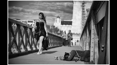 I shot it wide open at f4, I wanted to highlight the beggar (who's a lady) and catch the lady walking by. I got lucky when the passer by glanced down. Anyway, just a pic to create a possible talking point. I gave her some money when I left. Thanks to all contributors and their comments.