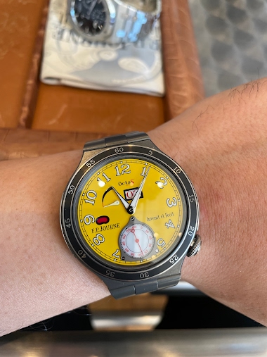 Was always intrigued by the case of the Elegante. I requested one in titanium recently -- something to look forward to! I also had the opportunity to try on the ti AR2 this weekend, the dial is striking and really quite amazing in yellow. I do wish they reverted back to 42mm on some of the sport pie