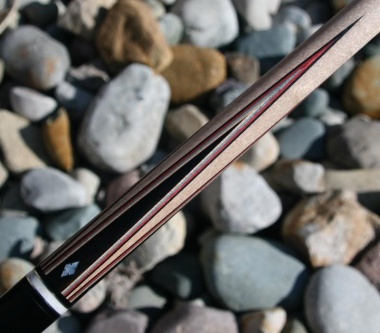 Cue B is worth more than cue A by alot. The pocket for the inlay on cue B is one hole, the diamond is put in then filled with epoxy. The worn brown bumper is also a bit of a giveaway regarding George.