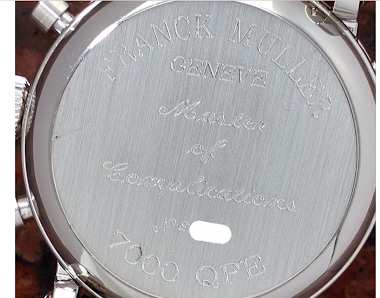 This is not the case back of the Franck Muller Perpetual Calendar Retrograde Moonphase Chronograph reference 7000 QPE that is in the picture above. Here is the case back of the platinum version. The case back in the replies is form a FM chronograph that is indeed less than 10% of the PP price. This