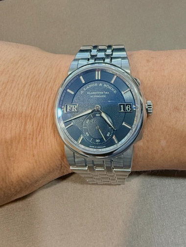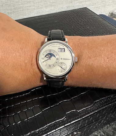 I fell into Lange because of the Lange 1 but the 38mm really looked awkwardly small on my wrist. Hence, the Grande Lange 1 at 30mm AND a much larger moonphase...