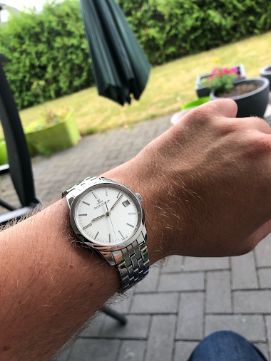 Great new dial variation! Some "live pictures" show a rather rough surface compared to the press pictures. Let's see how it looks in the hand and on the wrist. As an owner of the black dial variant I find it interesting that the winding rotor is mentioned as 22k gold. It is not stated on the website