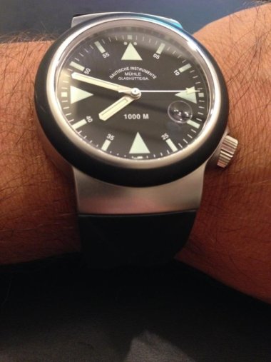 This was a gift (yes I know...I should be extremely thankful). I've always had my eye on Muhle Glashutte and the SAR Rescue Timer, and I am finally able to handle one in real life. I was told many times that the watch is magnificently luminous, so here it is... As you can see, this one is on a rubbe