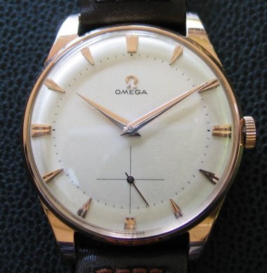 Decided to have a little fun with a nice 18k pink gold Omega Tresor from about 1959. This is what it looked like before. Then I managed to pick up one of the nice Watchco dials and voila! This dial is striking. I like the transformation and think I will keep it this way. Sorry old dial . . .