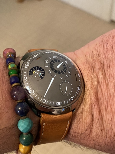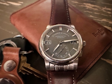 Hi I have just completed my first month with the new white gold Odysseus. I bought two leather straps from Lange and I have the rubber it came with. I have to say I prefer the brown leather one the best. The rubber one is interesting, but it doesn’t hold the weight of the watch that well. It’s also